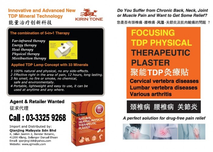 TDP stands for "Te_diing Dian-ci-bo Pu", that is the Pin Yin pronunciation for "Special Electromagnetic Spectrum". Te-Ding means means special. Dian-ci-bo Means electromagnetic and Pu means Spectrum. It is a new type of device invented in China in 1980 by a group of scientists and physicians, headed by Dr. Gou Wenbin at the Chinese Medicine Institute in Chongqing Unlike conventional infrared therapeutic devices, the TDP Machine features a plate coated with a proprietary mineral formation consisting of 33 elements. When heated, this mineral plate emits a special band of electromagnetic waves in the infrared range of 2 - 50 microns which simulate the Bio-Spectrum waves released by the human body itself. In clinical applications in China and other Eastern Countries for over 10 years, the TDP machine has proven itself to be effective in treating ailments such as chronic wounds, joint pain, arthritis, back pain, injuries and some skin conditions like herpes and psoriasis etc. TDP has been widely used in China to treat over 100 chronic conditions . Studies done in China show TDP Machines are effective for more than 100 ailments. It is also widely used in China to promote and maintain health. Since it was introduced into clinic and home use in the early 1980's, the TDP machine, because of its ease and flexibility of use and absolute safety, has treated up to 60 million patients in China, Asia, Europe, Japan, Korea, Australia and recently North America.